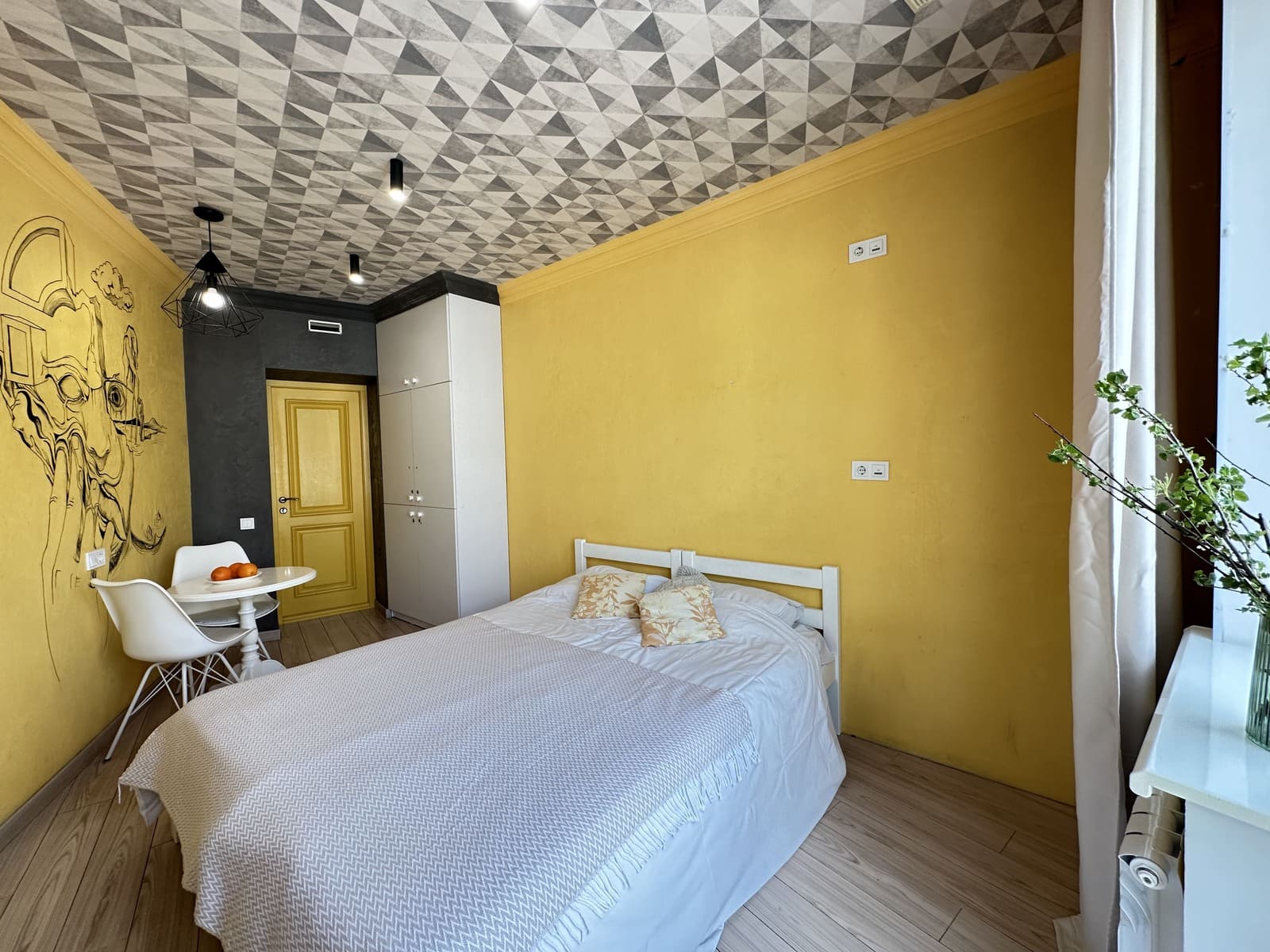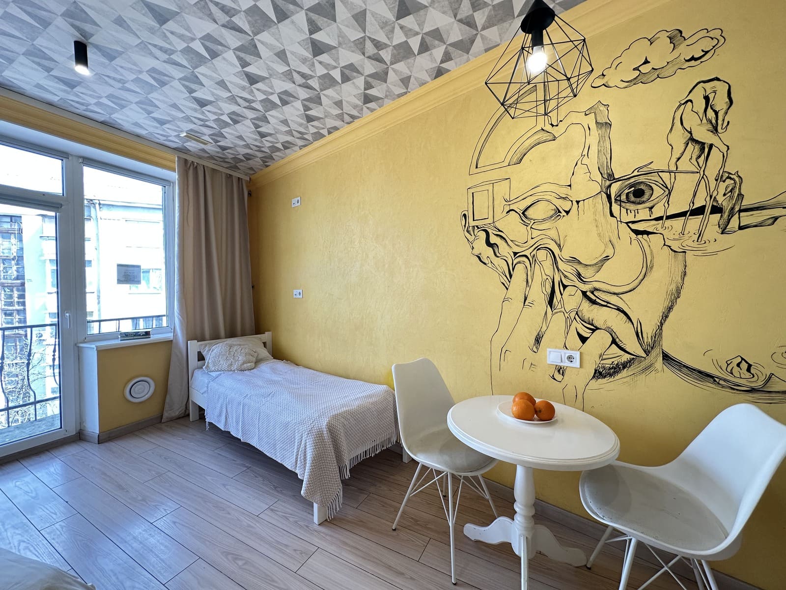 Ліжко-місце у затишній кімнаті на 2 людини. Кімната дуже світла, має авторський дизайн, власний великий балкон на парк. Зручне ліжко с ортопедичним матрасом обладнане розетку та ліхтариком. Кухня з посудом, холодільник, пральна машина кондиціонер. Всі популярні заклади Харкова поруч.
